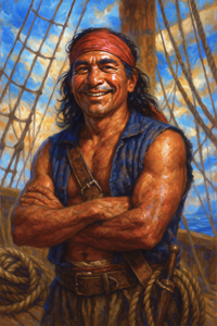 A mysterious sailor originally from Bomania, having sailed the South Talux Sea for decades. Now on a hunt for the elusive pirate ship 'Skull Tide'.