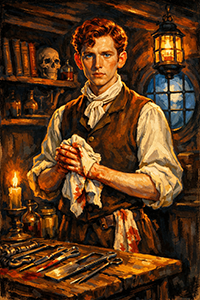 A young heartthrob Caldonian sailor and fortune hunter, violently dragged into a life of adventure by fate after being thrown over board during a manshark pirate attack, marooned on an island and kept as a prisoner by an old man and his tribe of armed blue monkies until rescued by the crew of the Shadow Dragon.
